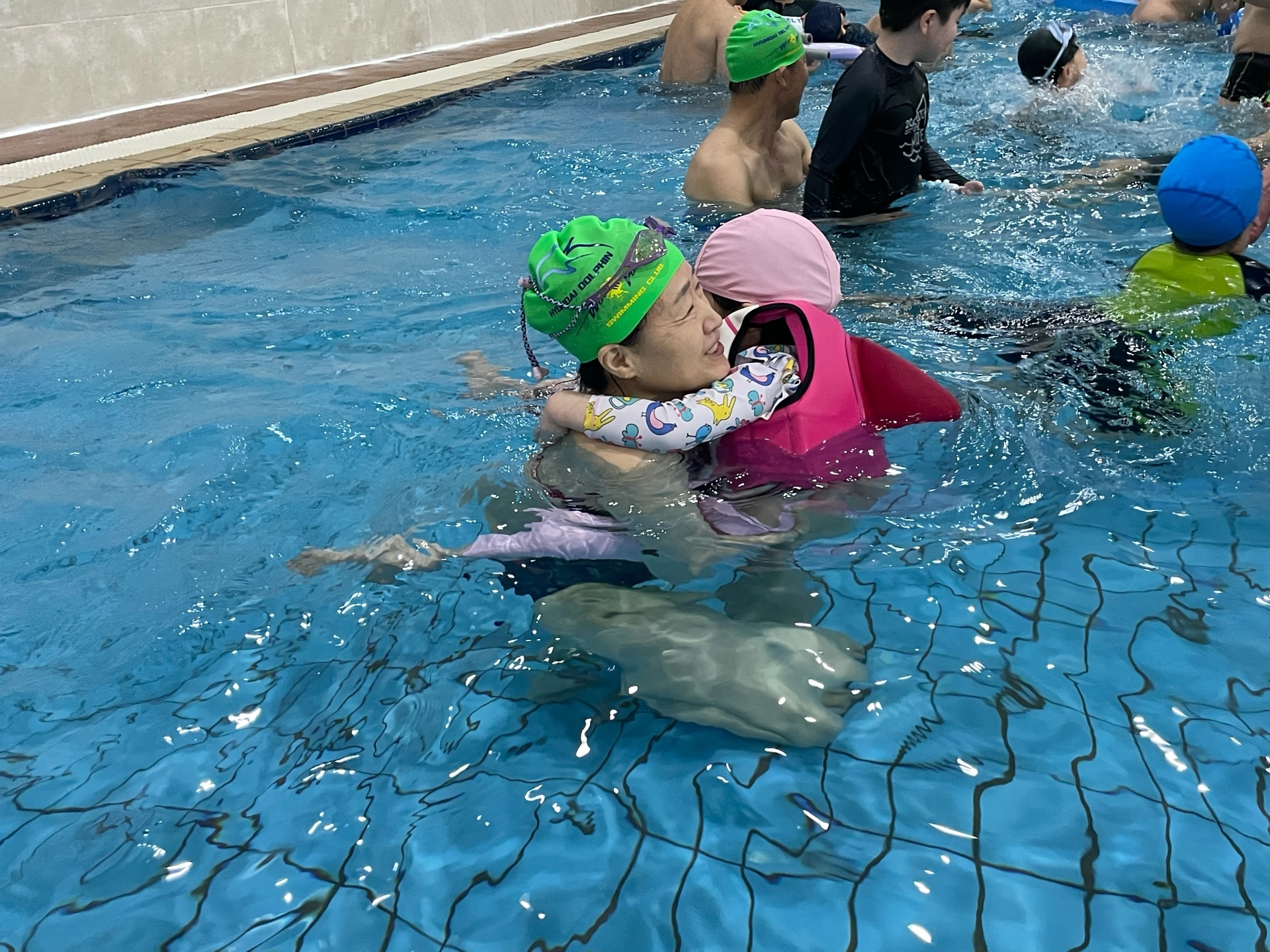 물과 수영장에 조금씩 적응해가는 친구들도 있었고, 돌고래처럼 시원하게 헤엄치는 친구들도 있었답니다~